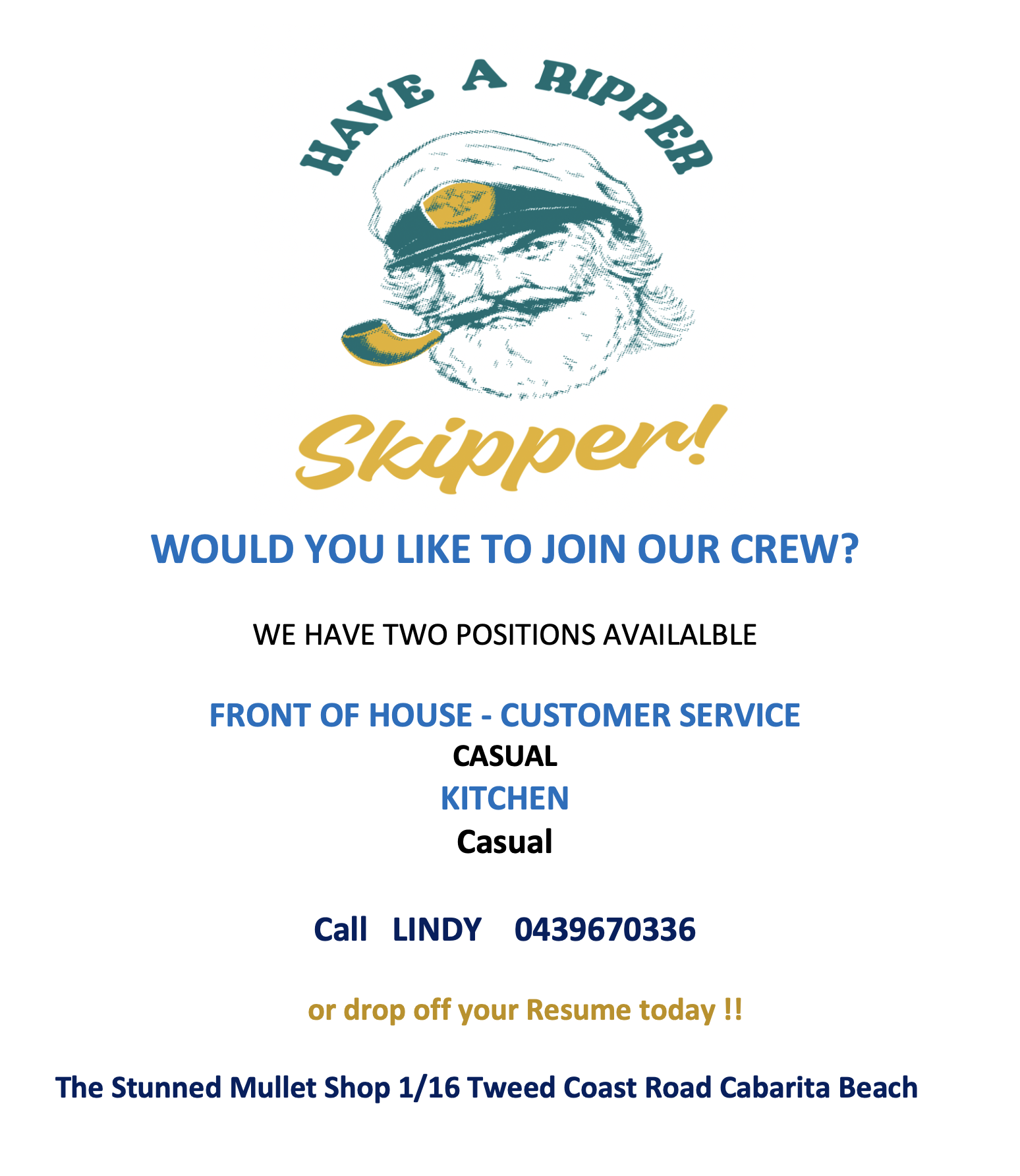 Please send us your resume to stunnedmullet2488@gmail.com or call Lindy on 0439670336